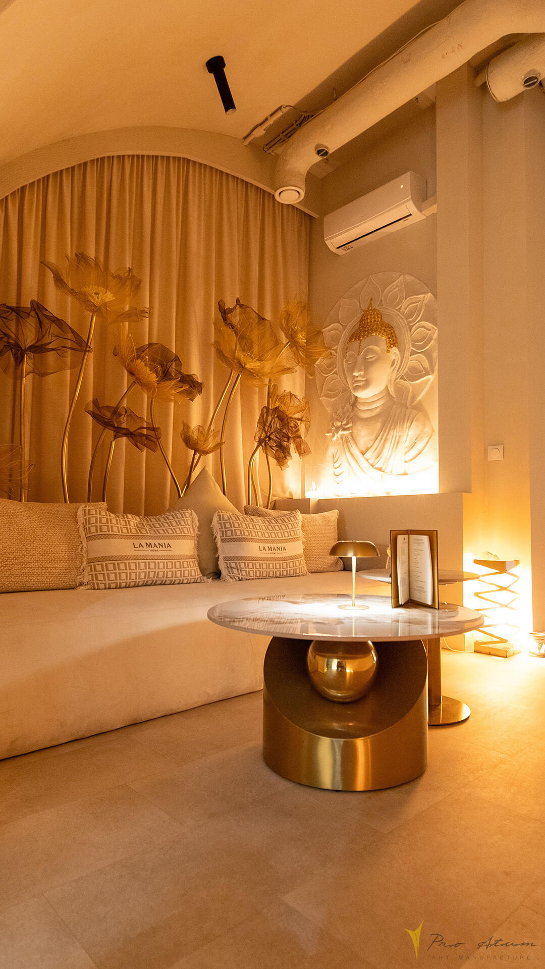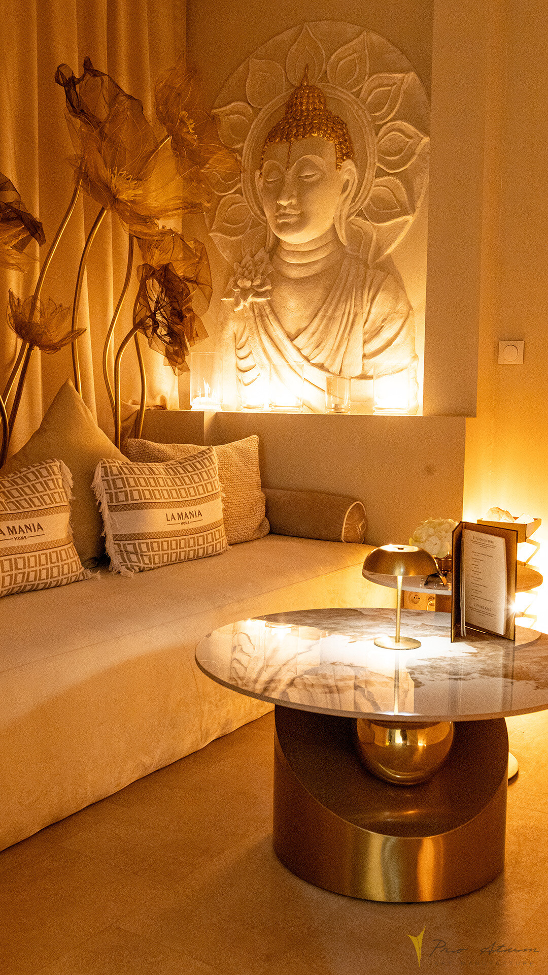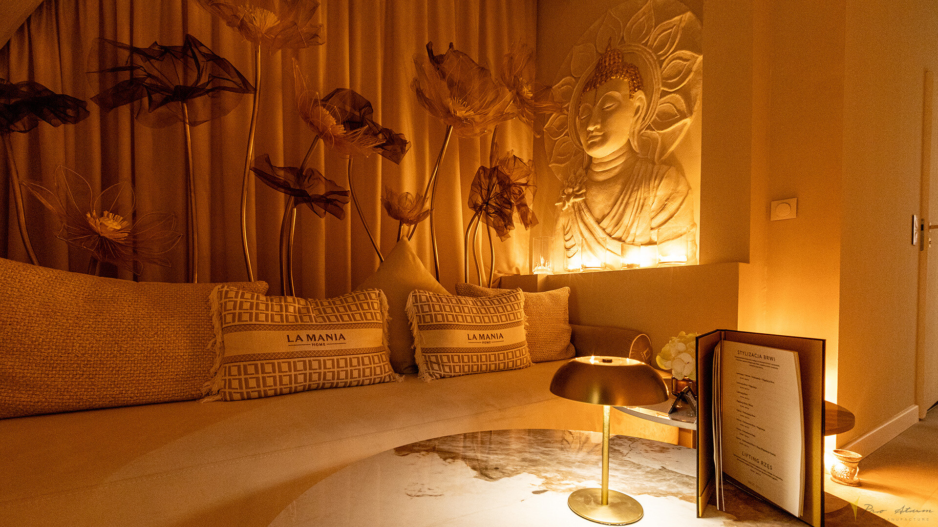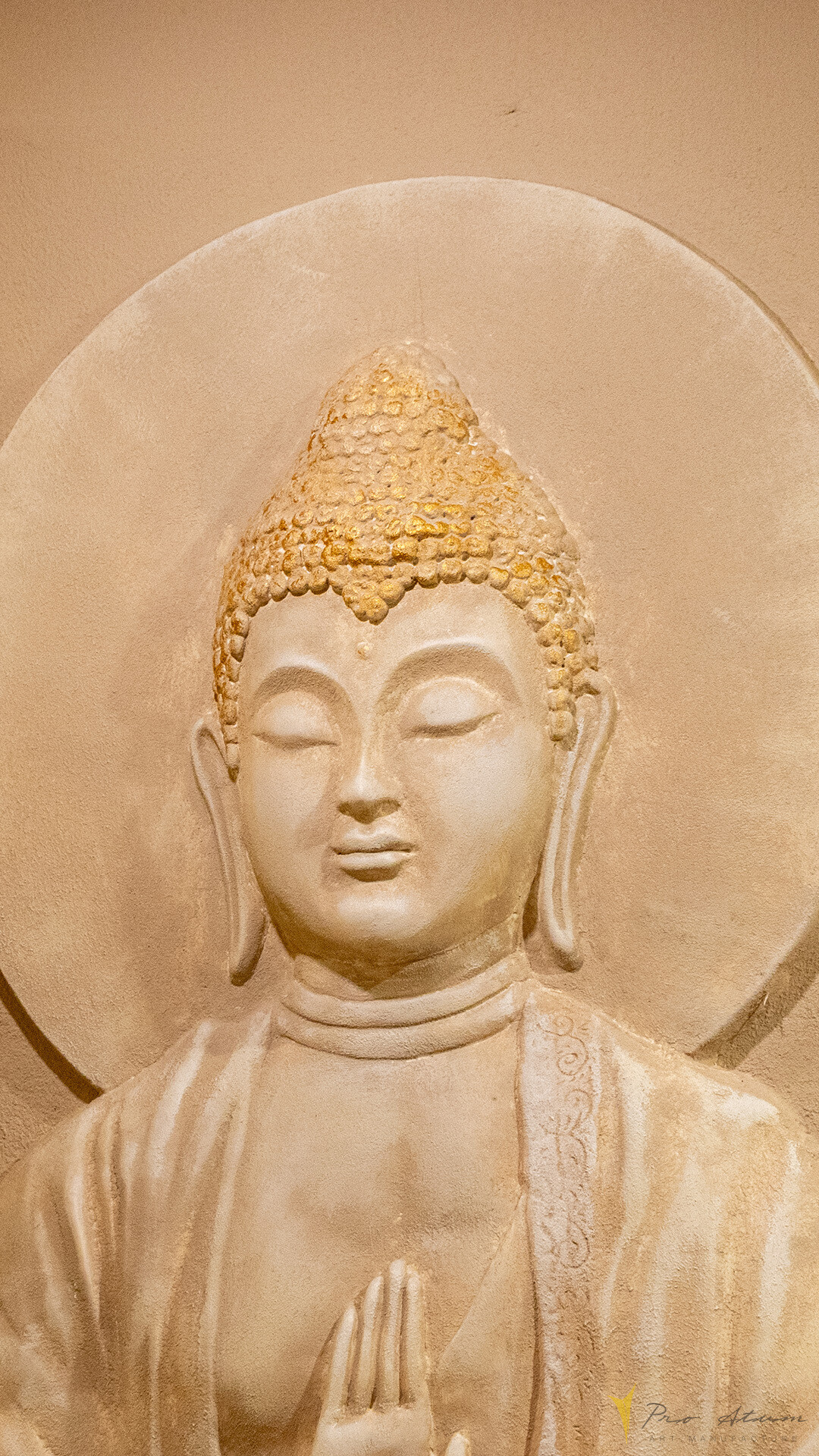W delikatnym uścisku płatków lotosu, Budda zanurza się w głębokiej medytacji, a subtelne rzeźbione linie tworzą aurę spokoju i duchowej harmonii. Jego wyraz twarzy, pełen cichej mądrości, zdaje się przenikać granice czasu, zapraszając obserwatora do chwili refleksji i wewnętrznego wyciszenia.