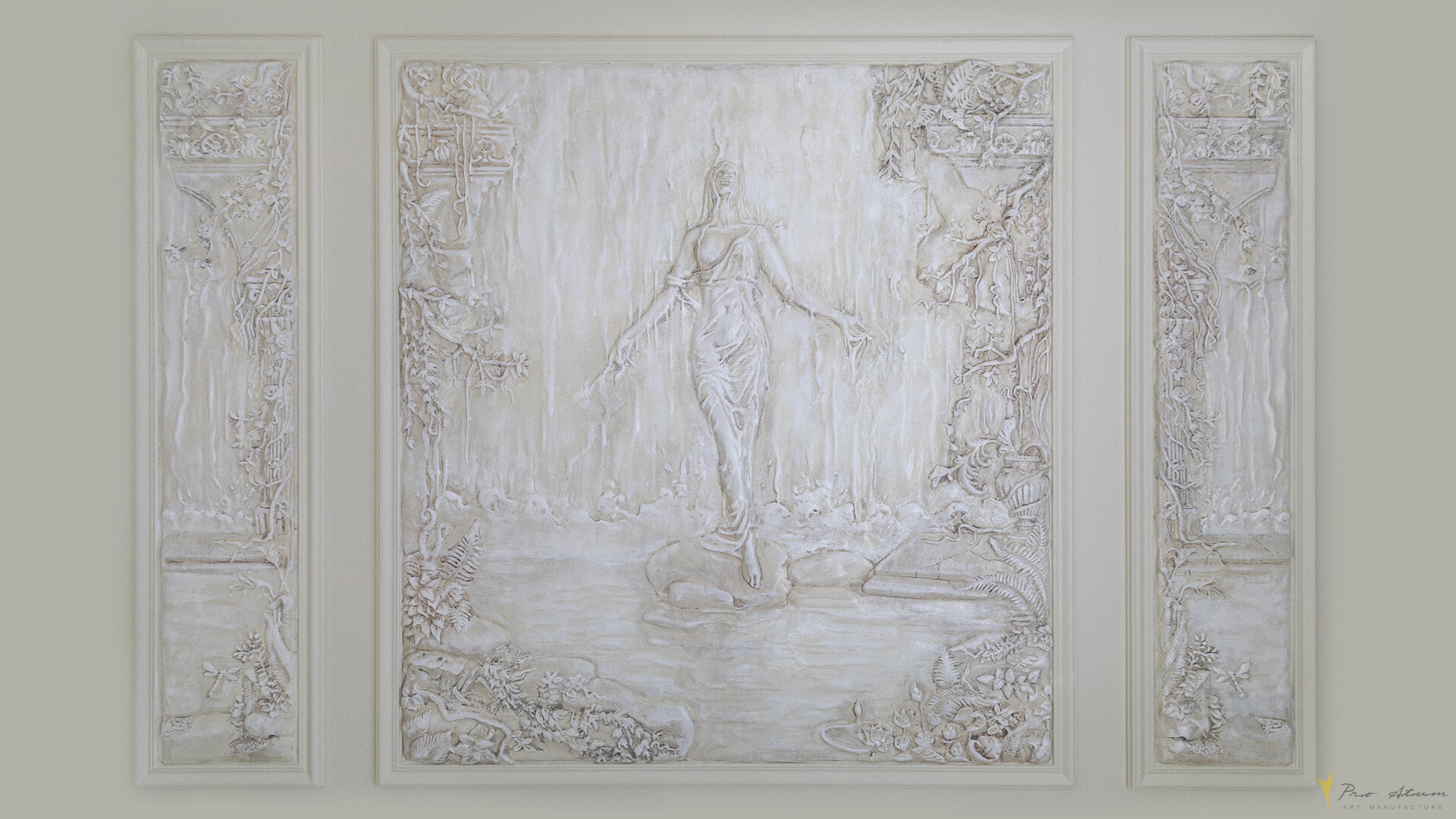 Z kaskady rzeźbionych strumieni wody wyłania się kobieca sylwetka, otulona zwiewną suknią splecioną z samego wodospadu. Jej figura stapia się z żywiołem, jakby była duchem wody – lekka, ulotna, pełna siły i gracji. Każda fałda sukni i każda kropla zdają się tańczyć w harmonii, tworząc hipnotyzującą opowieść o naturze i kobiecej tajemnicy.